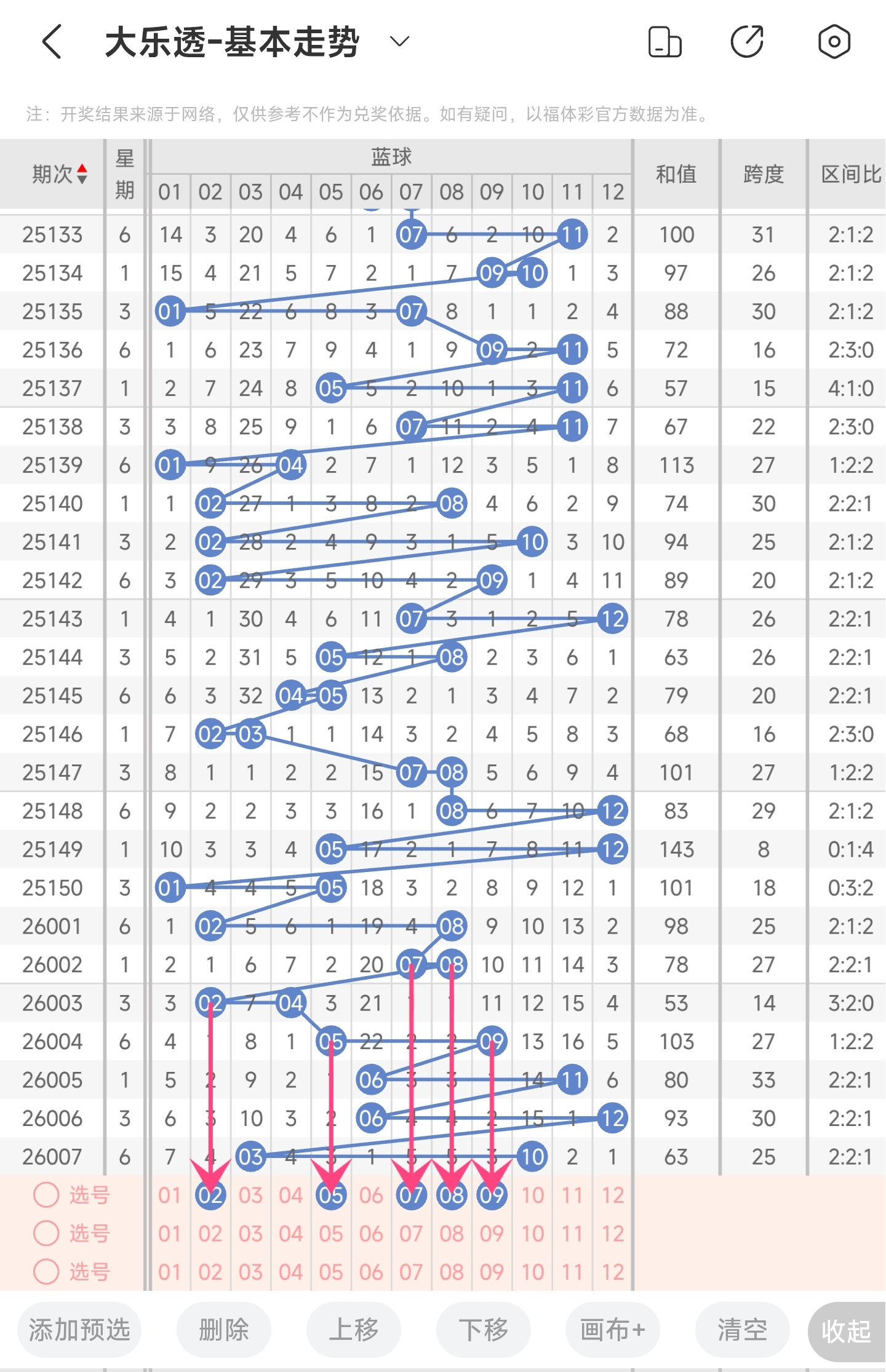 25150期大乐透文章推荐中命中141528314个红球。