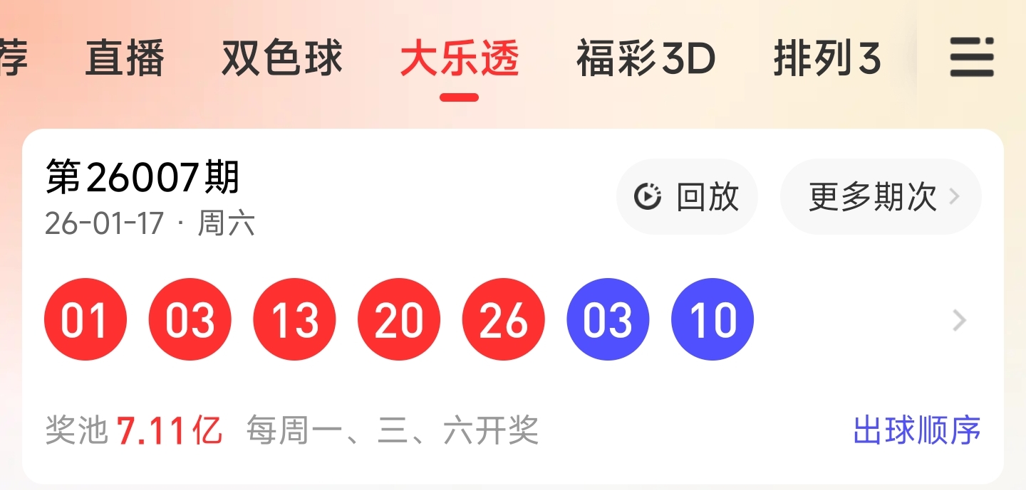 26007期大乐透文章推荐中命中1313263个红球,蓝球310