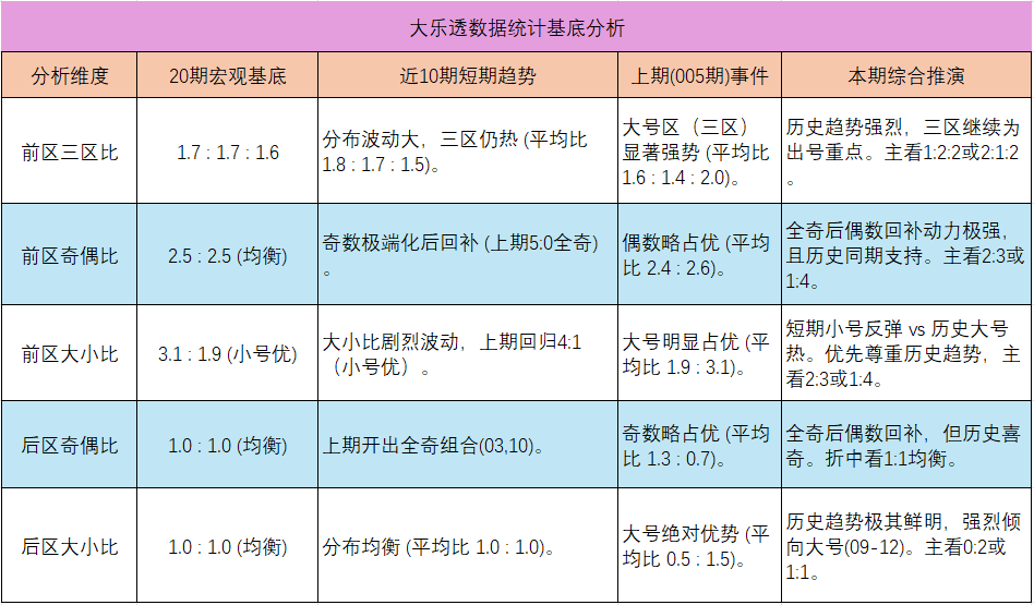 大乐透第2006008期核心观点: 前区面临 “全奇组合后偶数强力回补” 与 “历史同期大号区持续热态” 的格局调整;后区则需关注 “全奇组合后的偶数回补” 与 “历史同期大号后区定式” 的相互作用。