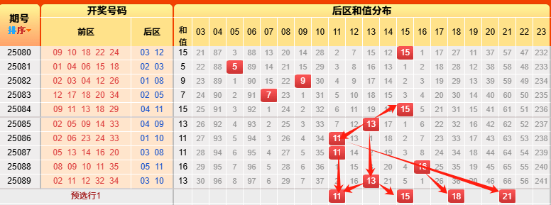 推测本期和值为11 15 18 21