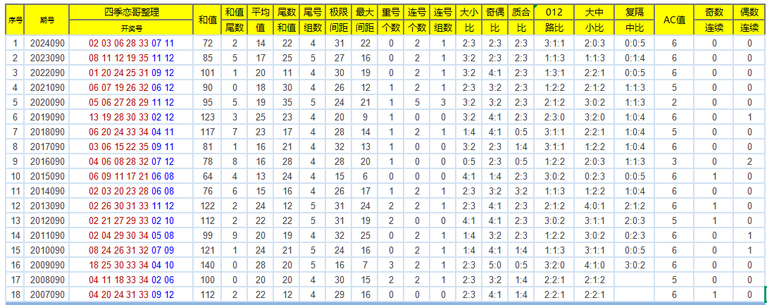 下图为大乐透彩种诞生以来每年的090期各类数据及89日同时期各类数据,各位大佬及彩友们请拿走~