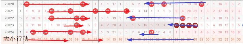 如图所示:体现的是3个局部走势的发展周期,圆圈为密集处的填空,本期定性为新局部走势第2期,真实目的空间填蛋跨期。1区号码密等距结构,空间在1区,蛋跨围着21建,大号拉伸,小号推进,大号多开。