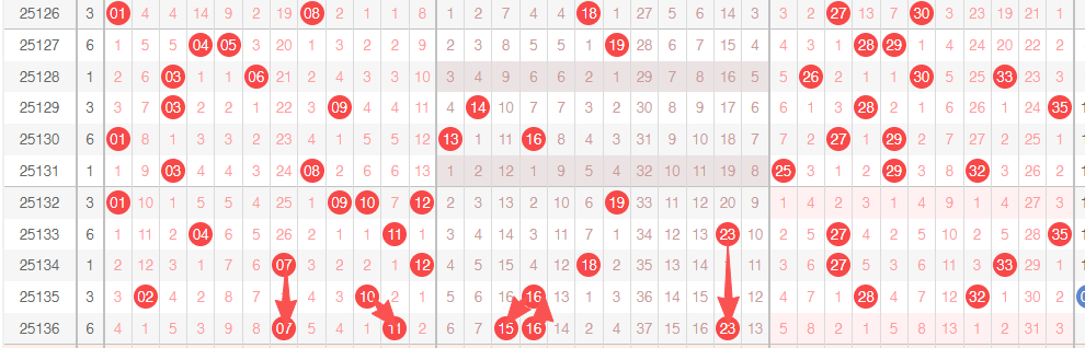 136期冷号:07 15 17 19 20 22 23 24 25 30 31 32 34注意下号码!!!!!出了07 15 23三枚号码✔