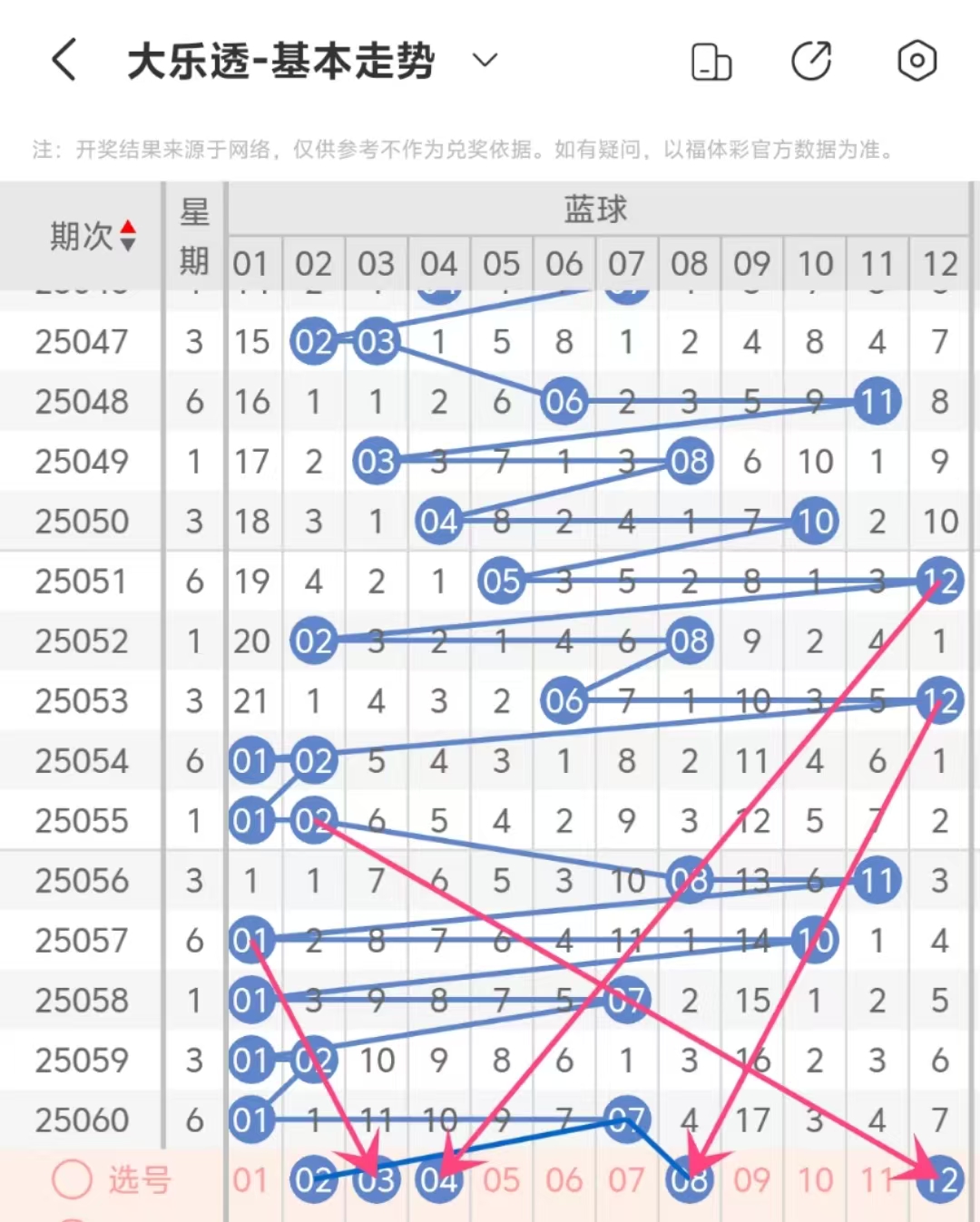 上期蓝球开出:01 07号,01号是小、奇,07号是大、奇,理论上本期考虑大小偶。