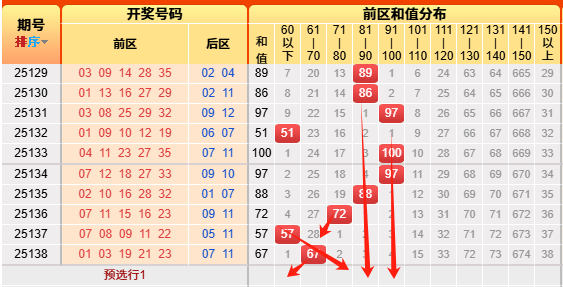 接下来我们来看前区小大、奇偶、质合、和值分布图: