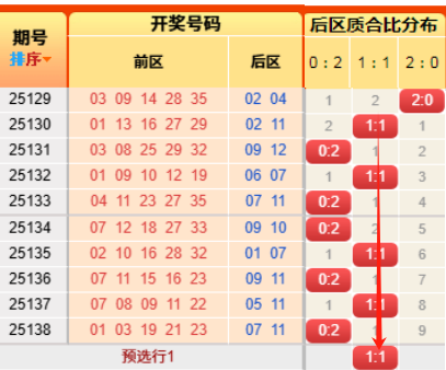 根据遗漏对称值来看本期选择1:1,如果你一定要看0:2也是可以。