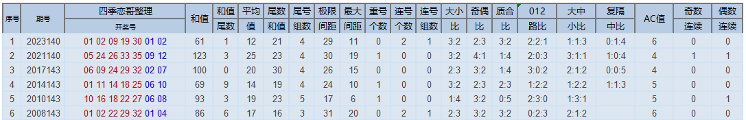 上期开出和值57,又命中和值范围。本次我们先根据历史次数统计,和值60以下开出248次、61-70开出234次、71-80开出368次,81-90开出485次、91-100开出496次,101-110开出380次、111-120开出312次、121-130开出155次、131-140开出90次、141-150开出26次、150以上开出9次,再来看近十次以上和值分别开出了1次、0次、1次、4次、4次、0次、0次、0次、0次、0次、0 ,低于阈值的有60区间以下、61-70区间、81-90区间、91-100区间、101-110区间、121-130区间,再根据遗漏斜率对称理论,本期注意60区间以下、91-100区间、81-90区间、71-80区间。