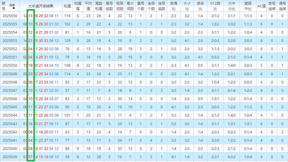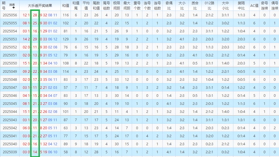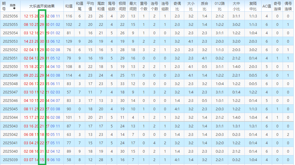 首先回顾大乐透25056期开奖结果:12 15 28 29 32+08 11。