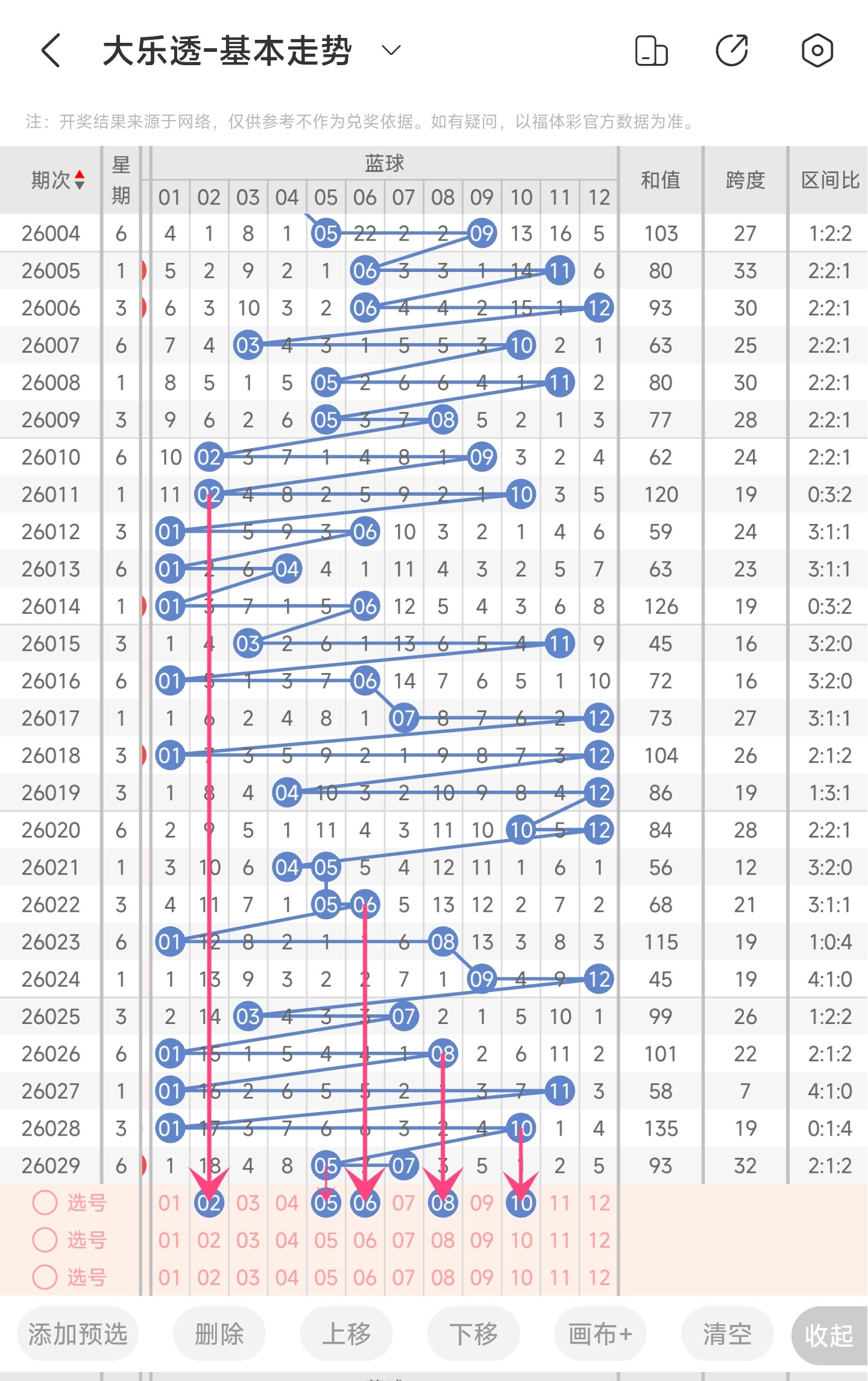 第26027期大乐透文章推荐命中4+0,红球3胆码中10,龙头命中9。