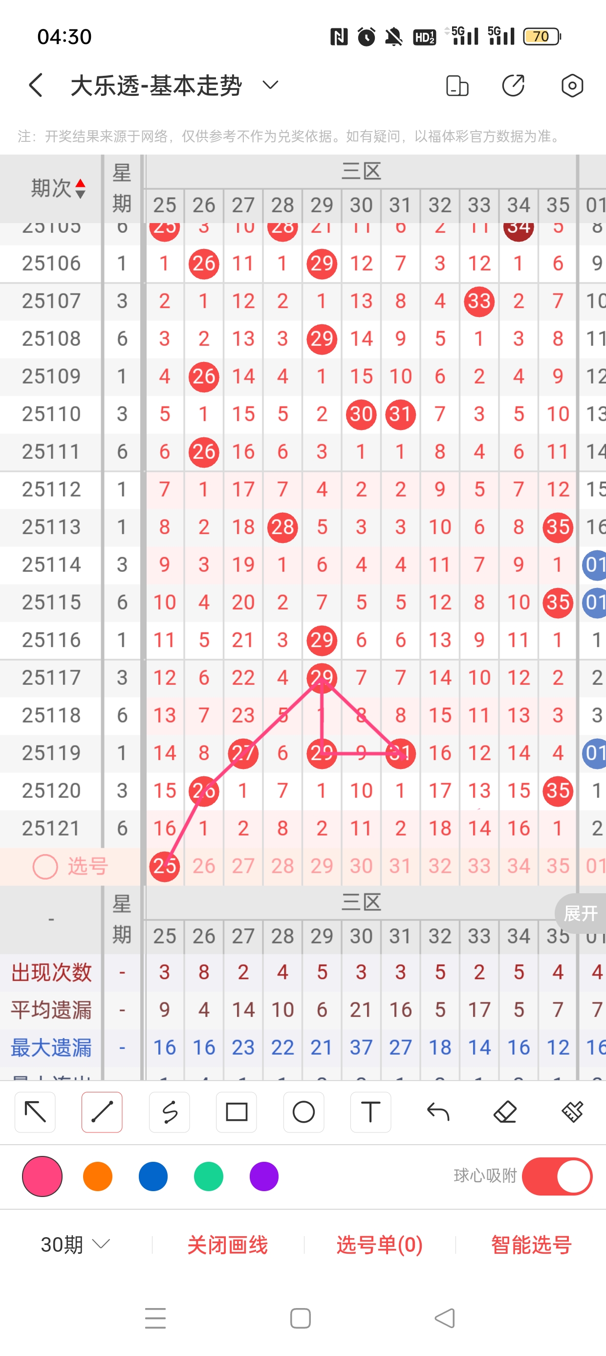 三区(25-35)近119期本区邻孤传47邻94孤8传,孤号热度高,本期着重邻传。近119期本区012路39:52:53,1/2路热度高,本期着重0路。25已遗漏16期,与26之间呈现向左遗漏递减态势,需防。