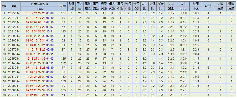 下图为大乐透彩种诞生以来每年的044期各类数据以及历年同日期开奖数据,各位大佬及彩友们请拿走~