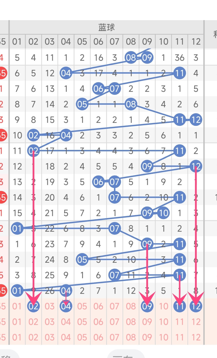 上期开出了14号球。往前一期开出了711号球。通过分析蓝区走势图,我们可以看到蓝区开出的号码跨度整体大多数情况下基本遵循一大一小这样子开。上期开了跨度比较小的号码,推测本期跨度大概率会变大,上期号码主要开在了左边,本期比较看好号码一左一右。然后再结合冷热号情况以及遗漏期数,本期我们可以关注2491112等号。综上所述本期我们推测可能开出2491112等号码。