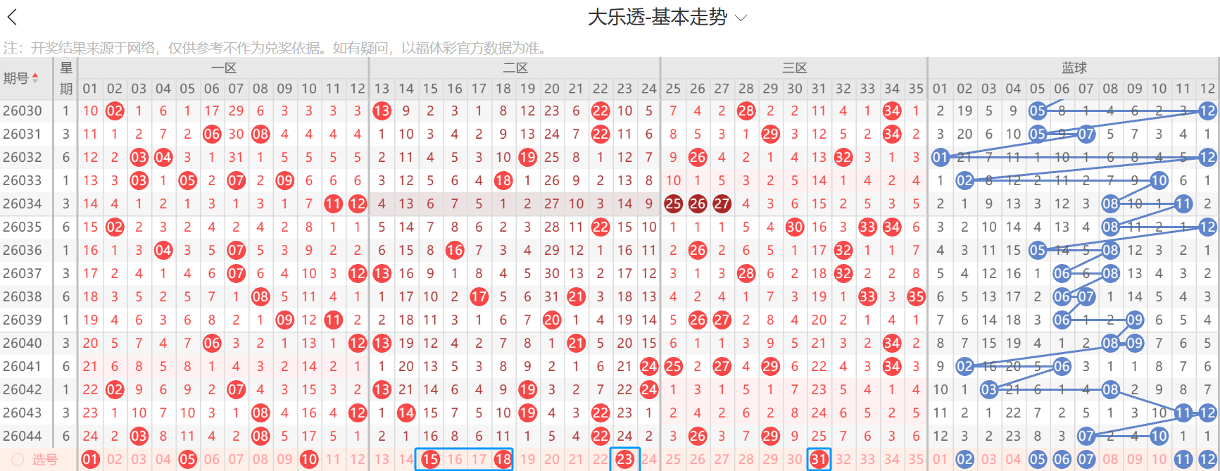 上图是本期的冷号,首先考虑二区出号,其次注意超级大冷号31,包括5出号也是需求很强烈,蓝球上期直播间给大家讲解冷号1.4.10出一正确,本期蓝球大底1.5.6.7.11.12,更多精彩内容直播间给大家讲解。