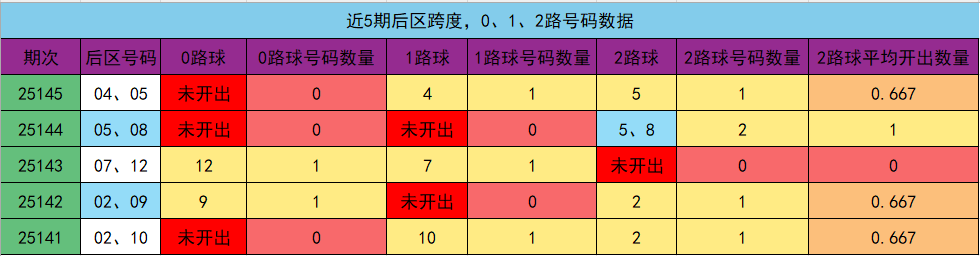 判断:本期后区大概率会 “离开04-05这个热点区域” ,向其他温冷区域转移。