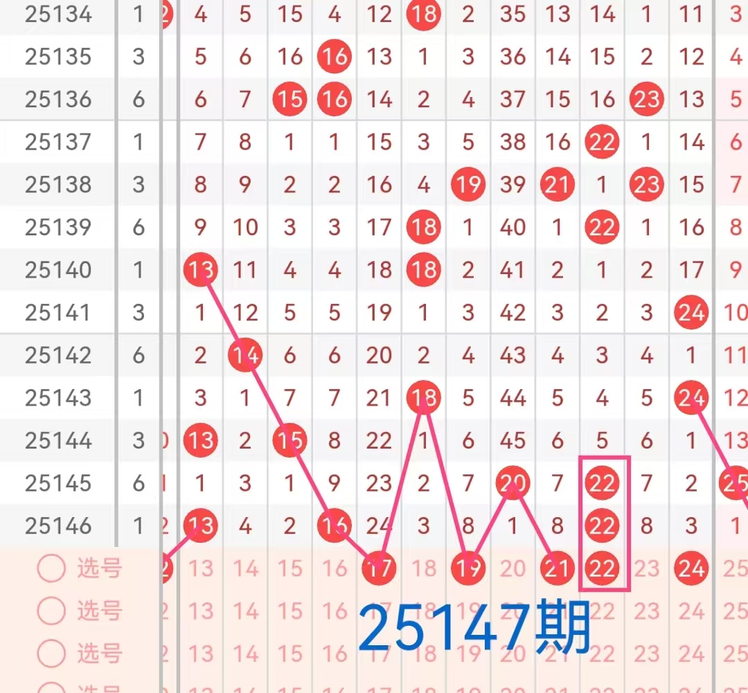 2. 凤尾号码分析:凤尾号码(前区最大号码)上期是22。这是一个偏小的凤尾,过去十期内,凤尾号码多集中在18到35之间,其中3字头号码表现较为活跃。因此,本期应重点关注18-35区间的数字,特别是号码30、31、33、35