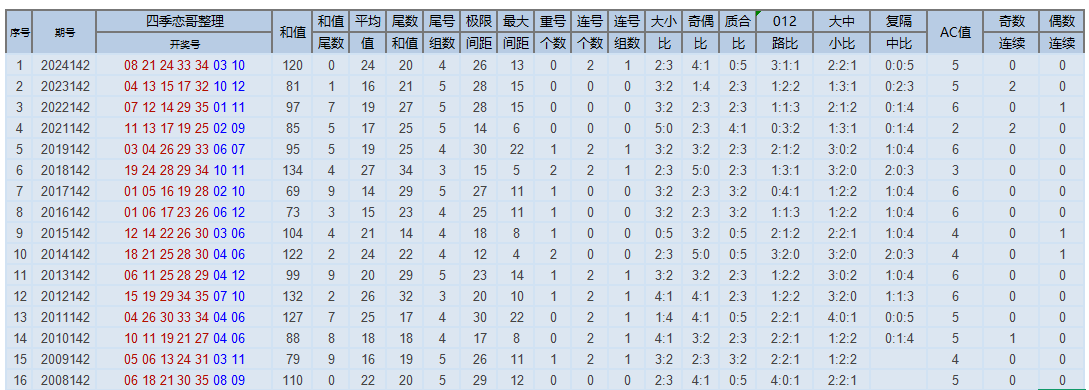 下图为大乐透彩种诞生以来每年的142期各类数据以及历年同日期开奖数据,各位大佬及彩友们请拿走~
