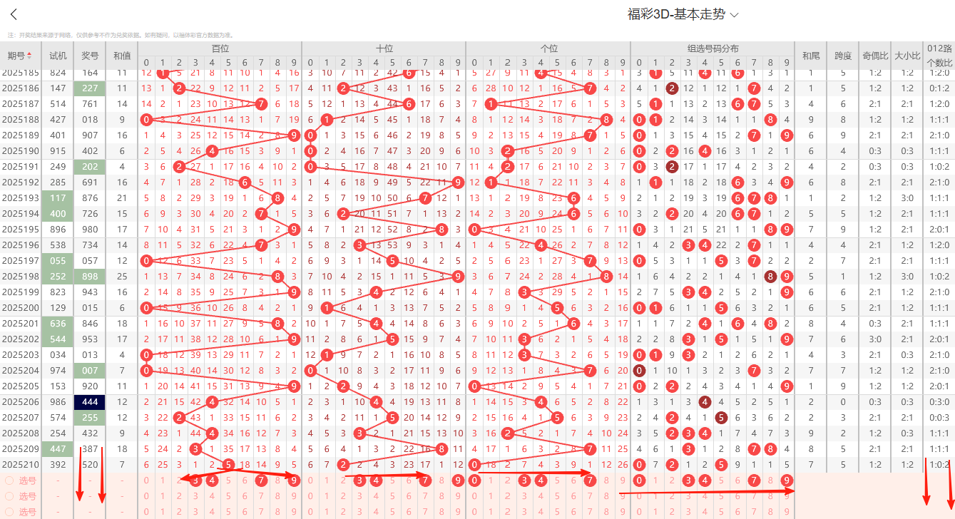 ③个位:上期开出小号偶数2号,上期出现奇偶互变开出偶数2路号码,根据历史记录012路及奇偶周期性规律变化的特征特点本期1路号码有开出的趋势2路号码注意适当预防。
