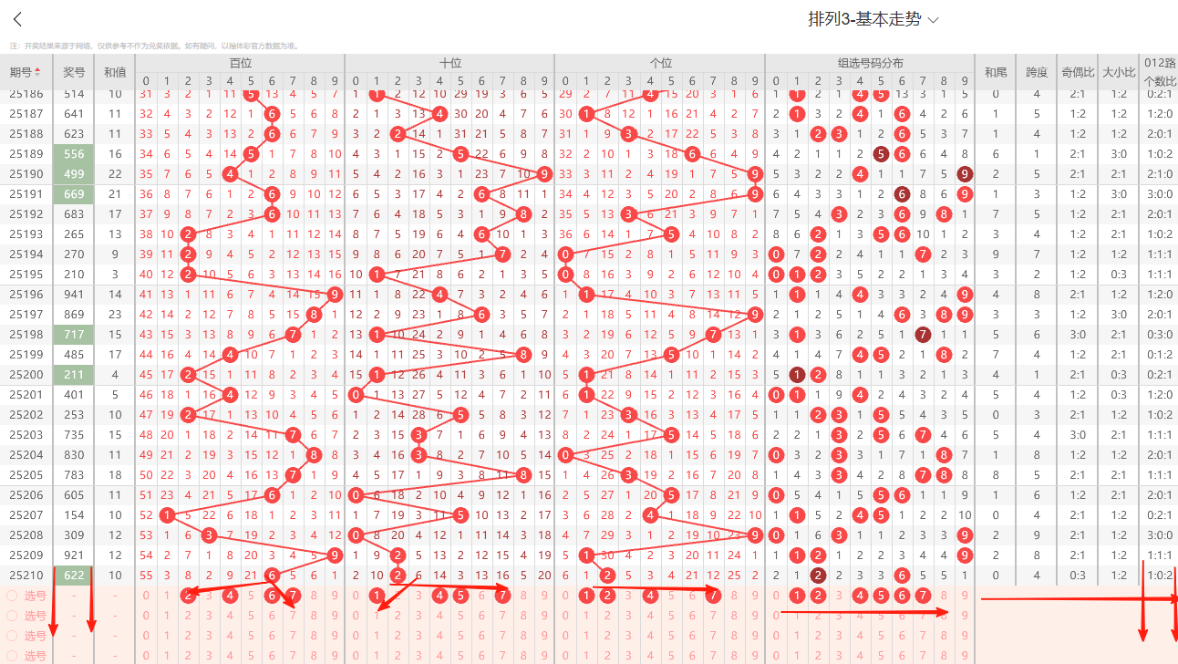 ③个位:上期开出小号偶数0号,上期出现奇偶互变开出偶数0路号码,根据历史记录012路及奇偶周期性规律变化的特征特点本期1路号码有开出的趋势0路号码注意预防。
