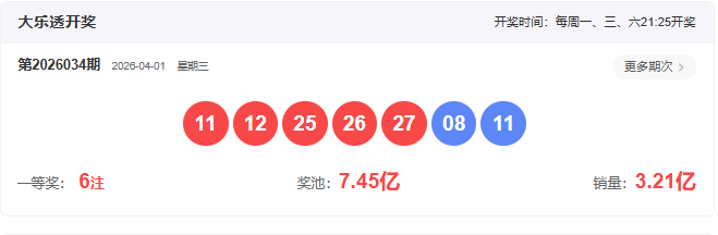 开奖号码:11 12 25 26 27- 08 11