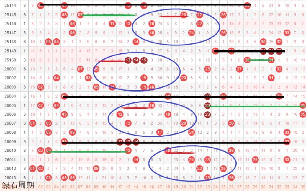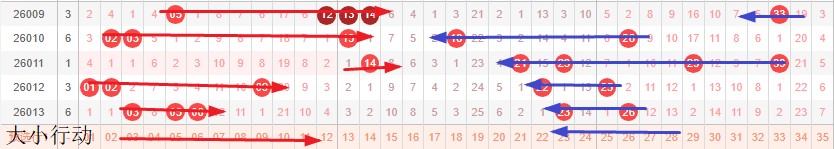 如图所示:体现的是3个局部走势的发展周期,圆圈为密集处的填空,本期定性为新局部走势第1期,架构填空第3期,画线期,造成号码密集主动调整空间。号码补6-26空间,具备断区。小号多开。