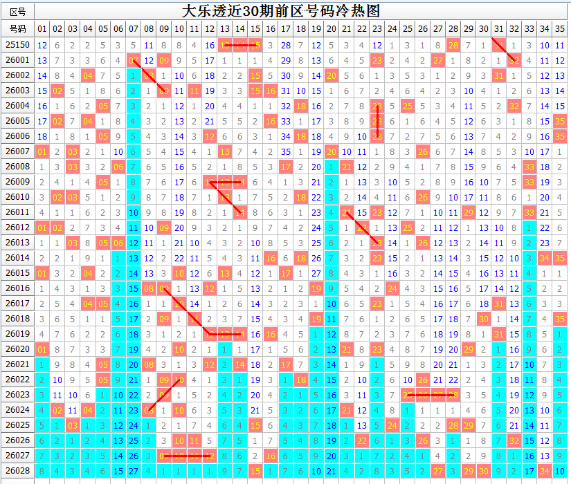 对前区大势的把握,少不了号码区间分布的情况。