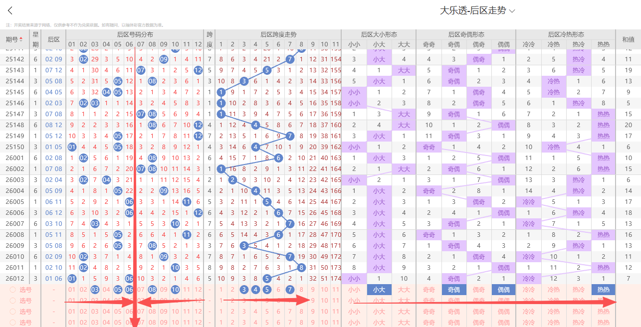 ③和值:结合对区间的比例数据来看本期和值参考90~120范围参考