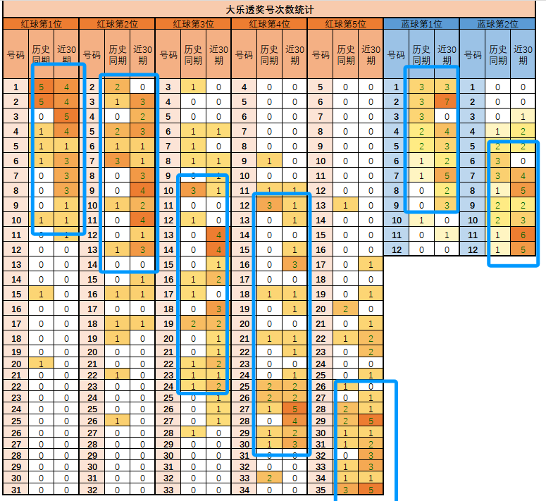 统计历史同期、近30期奖号频率,热门摸底,灵感来源