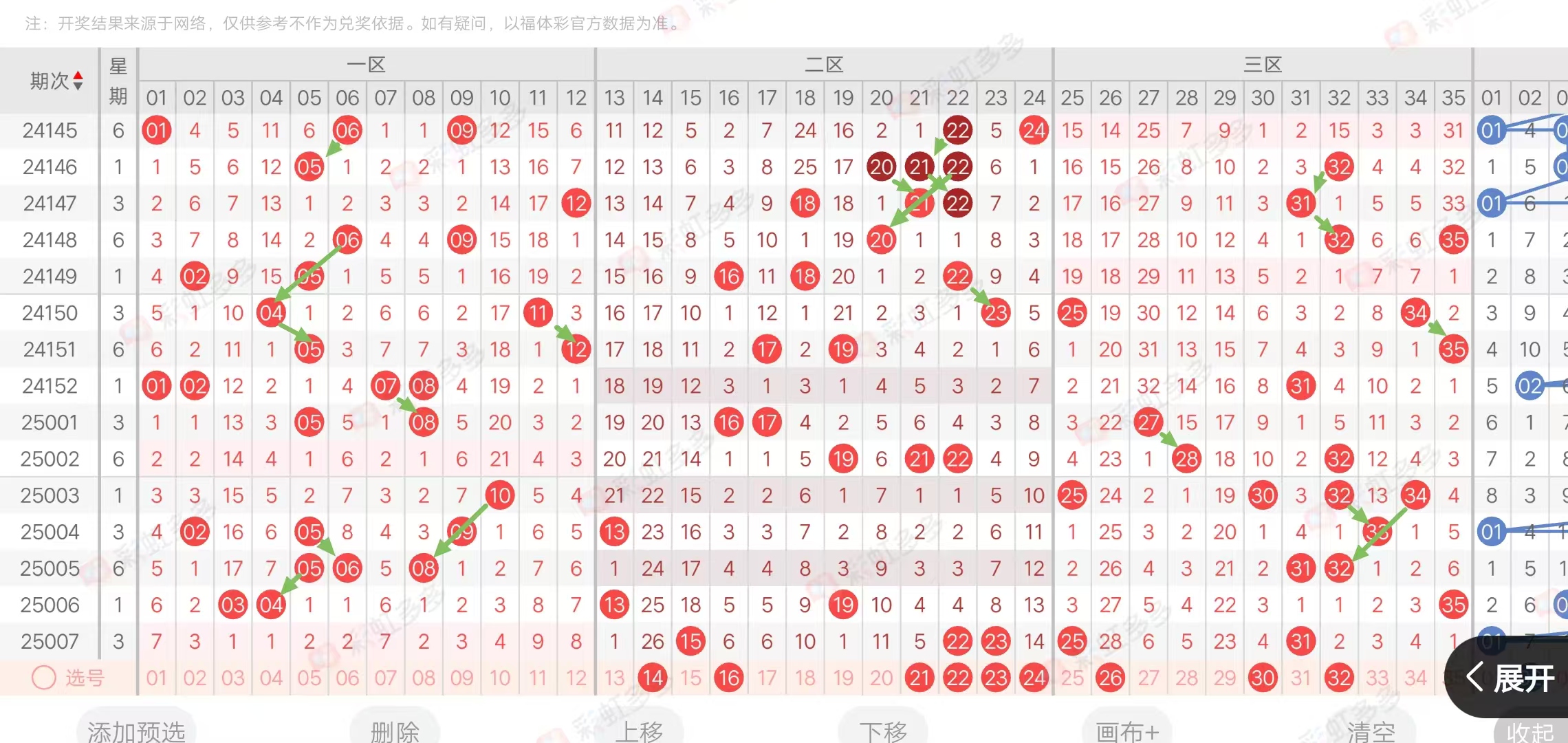 前区杀号参考:1.2.3.5.9.11.13.15.21.22.23.25.31.33.35