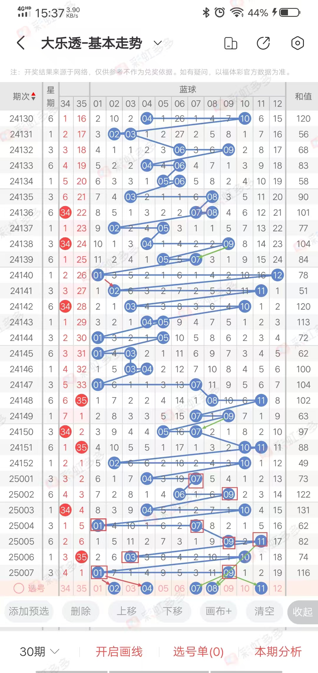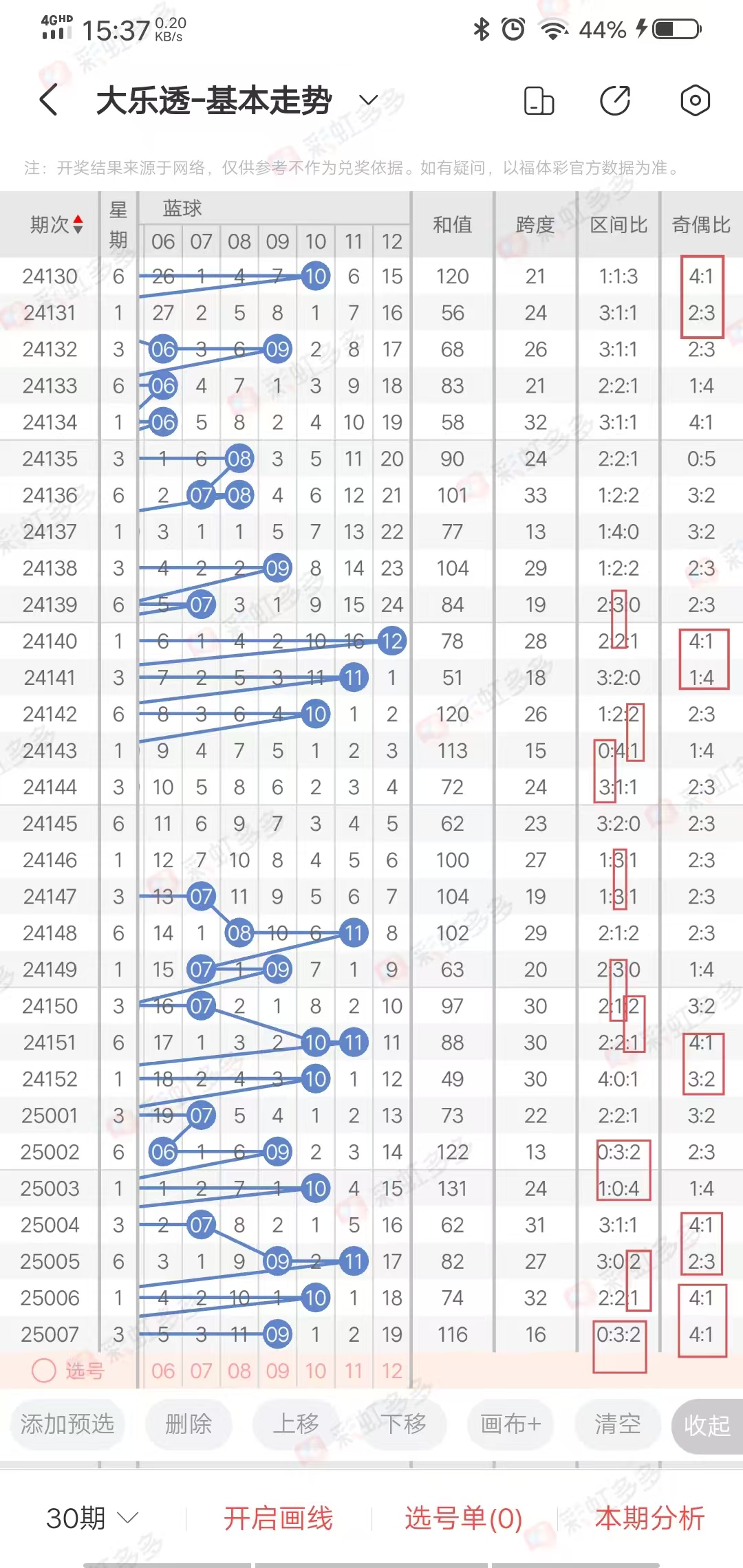 ✔本期大乐透隔期码分析
