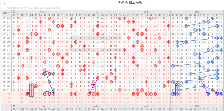 龙本龙-大乐透-第142期选号分析,重点关注一区和三区