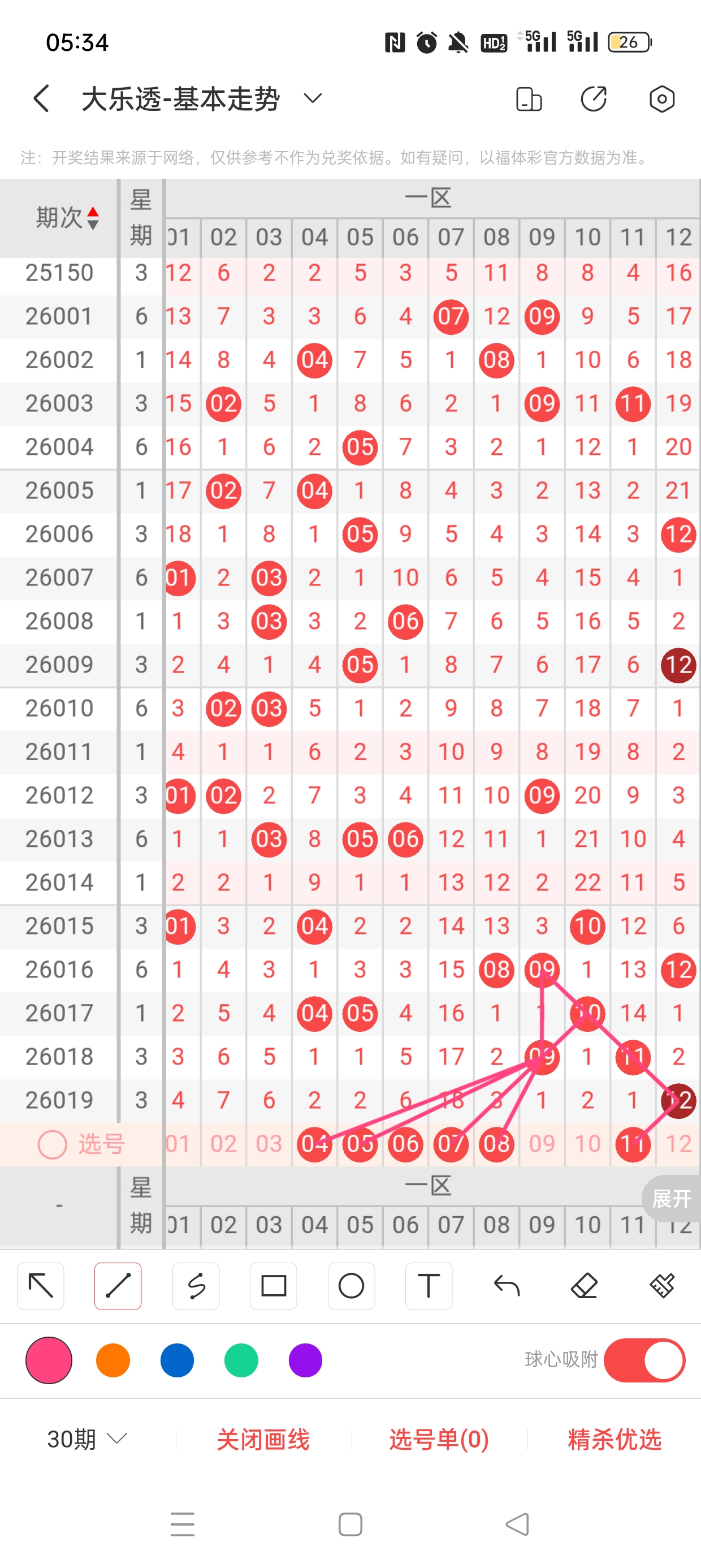 26020期大乐透,上期3+2,蓝4、12直接拿下,本期继续