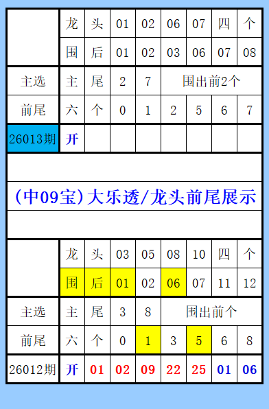 大乐透(中09宝)龙头前尾展示