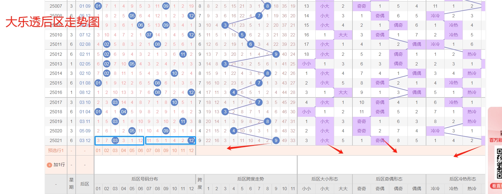 “乐透不止,分析有我”,您好,我是九尾锦鲤,有幸在这里与您相遇。上期分享的内容部分内容正确,如后区蓝球和值区间等判断正确,精选里有3个红球出奖号,蓝球1个,整体选号需要加强!理性看待,参考为主!!!今天分享的这一期是大乐透2025年的第22期,本期主要从区间落位,奇偶和012路趋势等做一些推断,期望对您选号有所帮助。更多的研判和分享会在每天下午2点直播后段有大乐透(或双色球)的直播分享,欢迎大家来直播间互动交流学习。