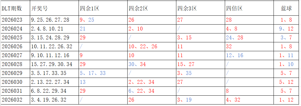 如图,红色字体是重复开出的号码,即为热号。蓝色字体是开出一次的号码,即为冷号。以近10期为一个分析周期:4余1区、4倍数区,走势较冷;4余1区、4余3区,走势较热。依据久热必冷,久冷必热的规律,本期重点关注:4余1区、4倍数区,区间号码可能开出2-3个;4余2区、4余3区,区间号码可能开出1-2个。区间冷热号码精选:***(会员专区可见)。个人分析,仅供参考。