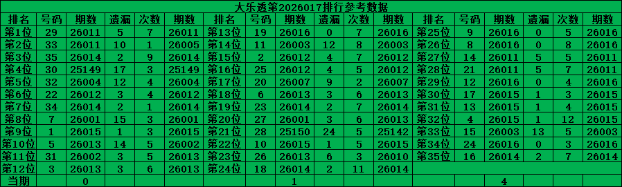 近期开出最多的位置是第32位,对应本期号码是:04号