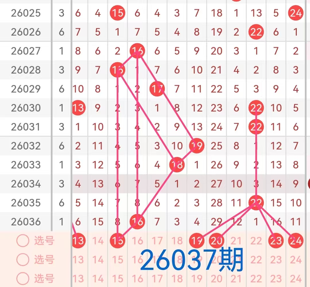 2. 二区(13-24):上期该区间没开出一个号码16,号码16在遗漏8期后再次开出。根据历史开奖来看,近期该区间活跃度较低,本期预计会有1-2个号码会继续开出。特别是那些遗漏次数较大的号码20、23、24和该区间内近期表现较好的号码13、15、19这个号码在走势上表现出一定的稳定性,且与前几期出号形成呼应,有望出现在本期开奖中。