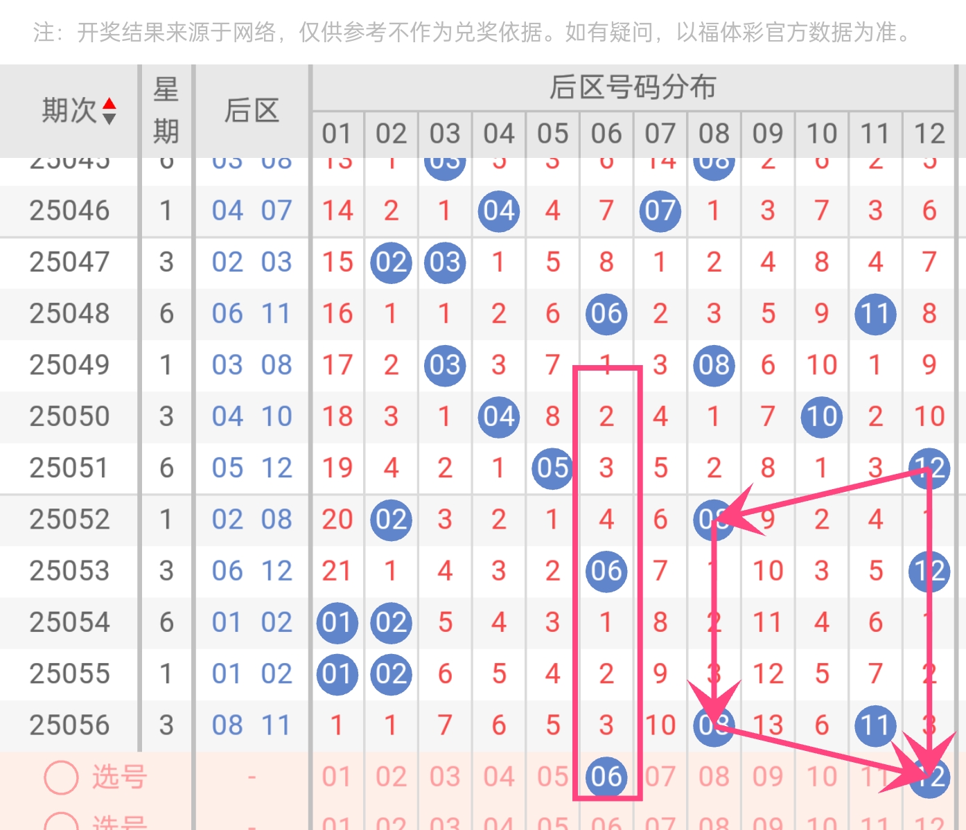 - 06与12跨度6,符合蓝球常见跨度范围(4-8),历史上06+12组合曾同期出现3次,稳定性较强。