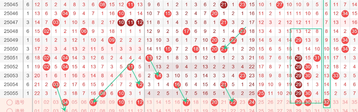 - **连号**:重点关注二区(21-22)或三区(29-30)。
