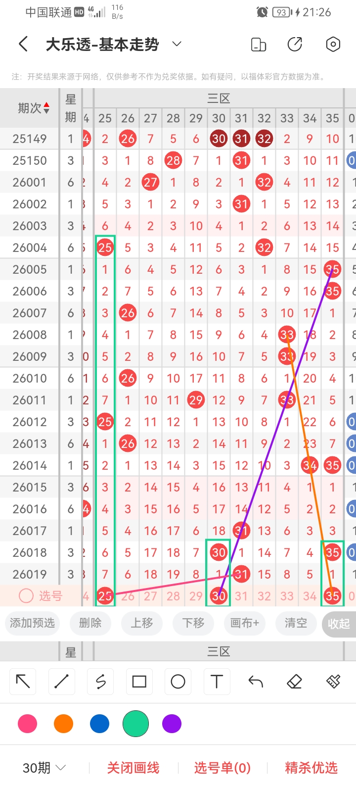 通过以上对上期的简单回顾,下面进入大乐透第2026020期(下面简称本期)的选号分析: