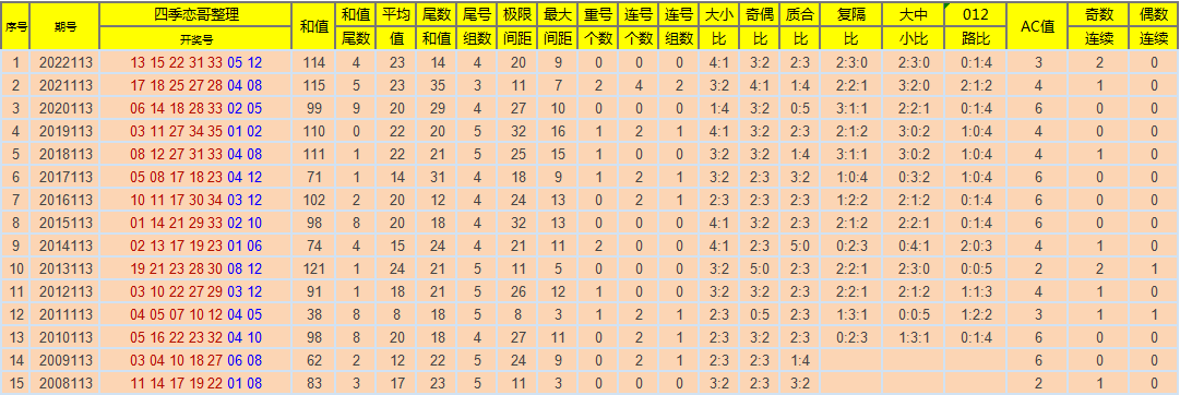 下图为大乐透彩种诞生以来每年的113期各类数据及9月30日同时期各类数据,各位大佬及彩友们请拿走~