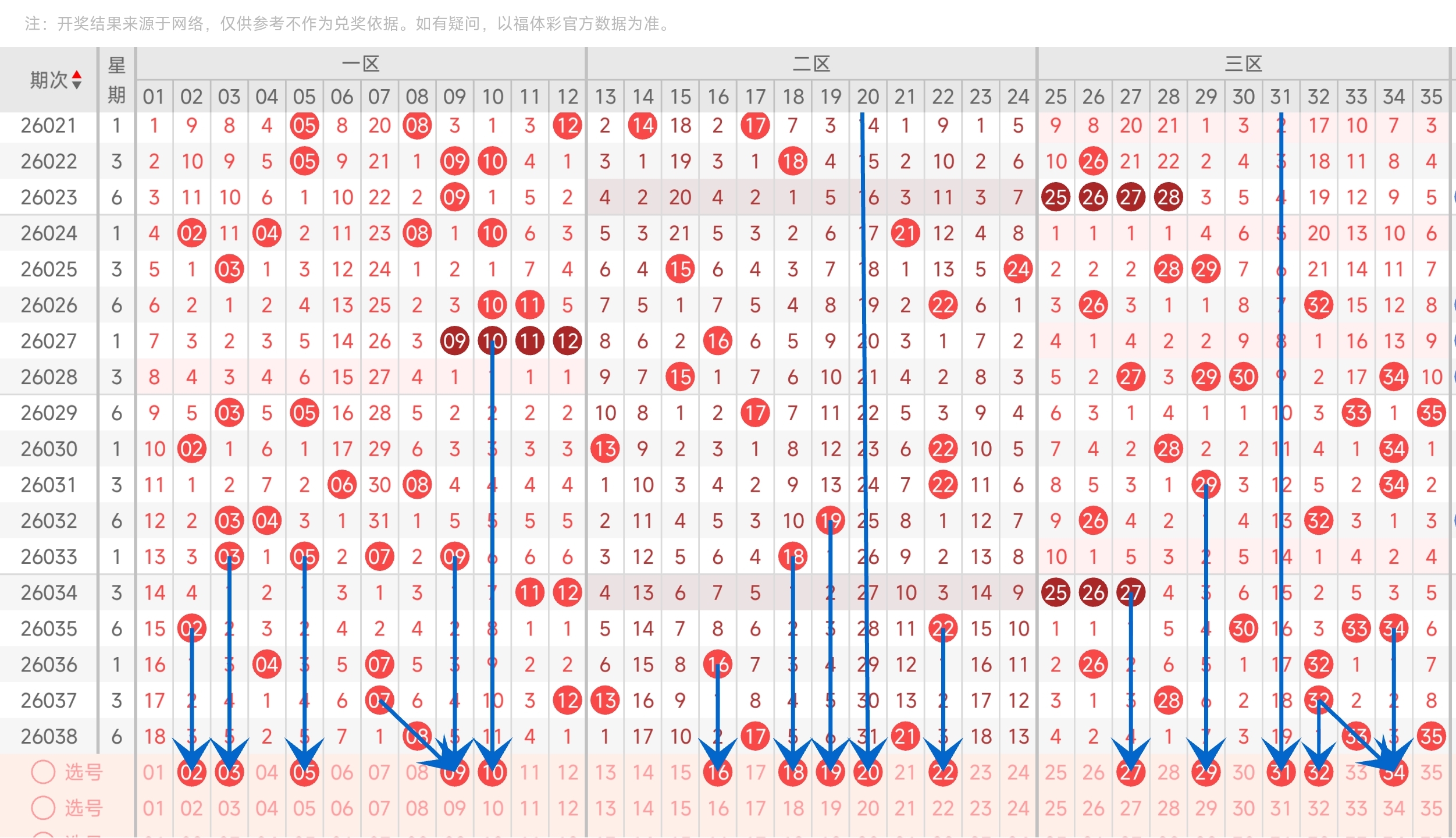 26026期大乐透文章推荐命中4+0,红球3胆码中10,凤尾中32