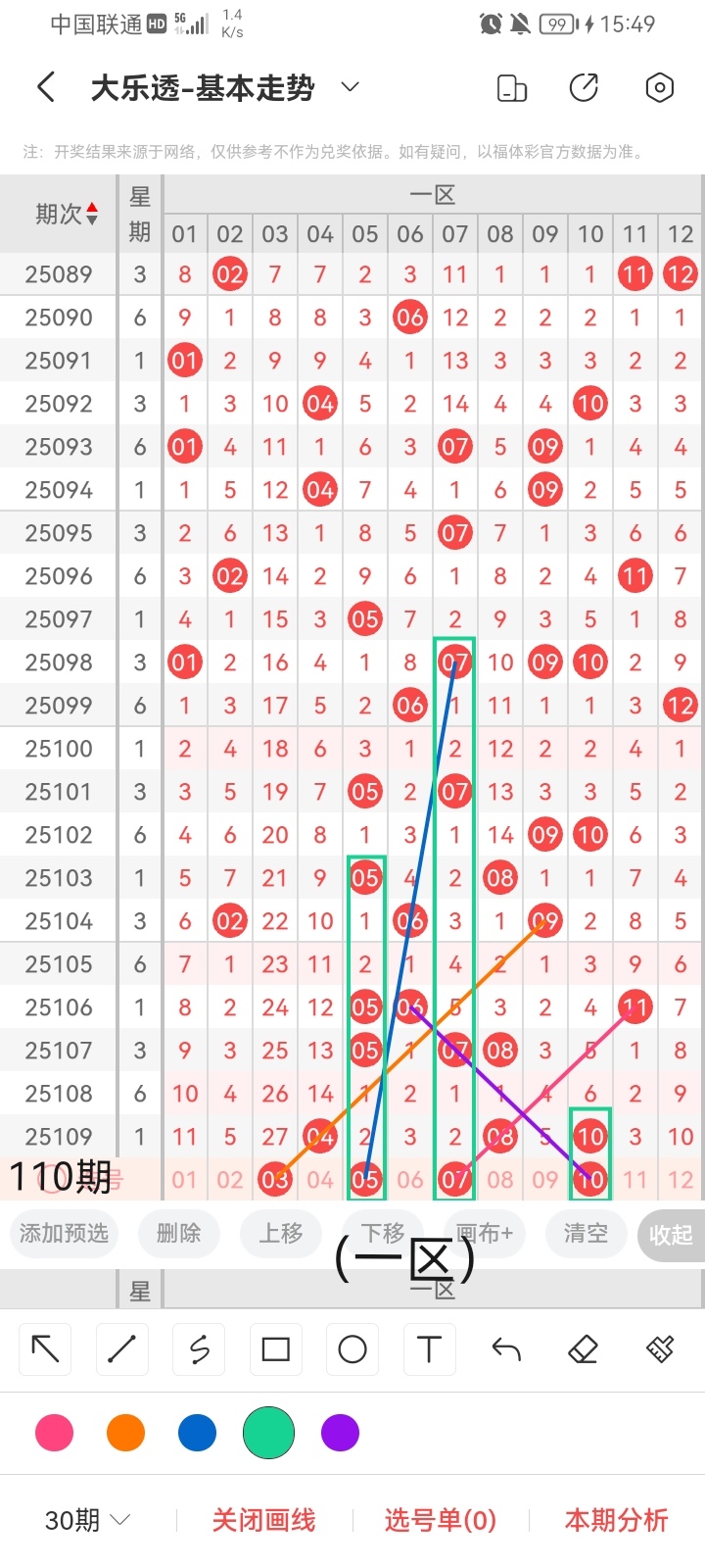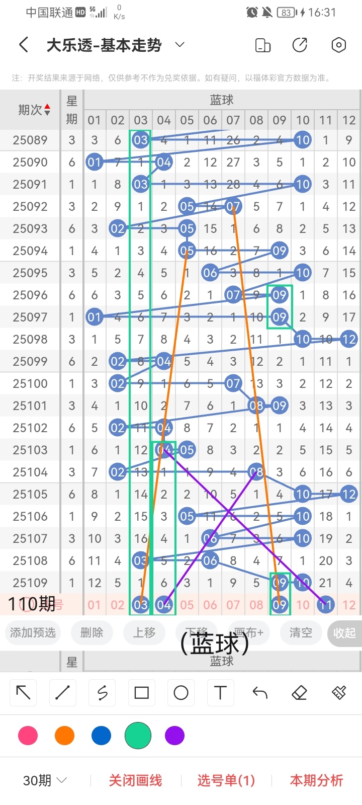 通过以上对上期的简单回顾,下面进入大乐透第2025110期(下面简称本期)的选号分析: