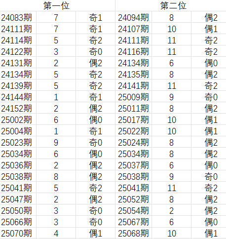 将上期蓝球号码4、12的奇偶、012路分类组合起来,也就是偶1路、偶0路,然后找到历史上最近20期第一位出过【偶1路】号码的下一期号码及1类型组合、历史上最近20期第二位出过【偶0路】号码的下一期号码及类型组合,如上图所示。