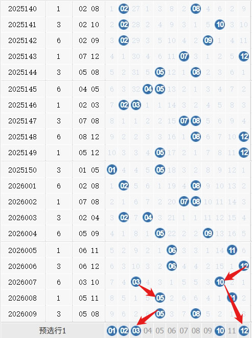 近3期三个指标来看后区总体推荐五枚号码供参考:01,02,03,10,12 !