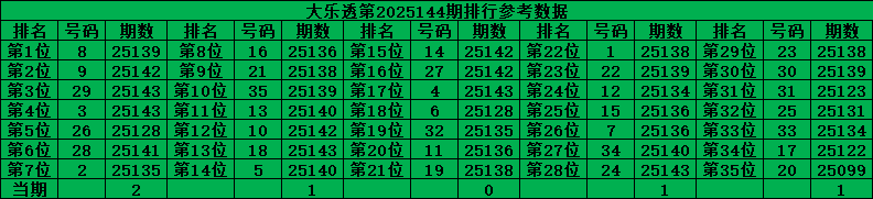 2025144期推荐奇偶比:2:0,大小比:1:1,012路比:1:1:0