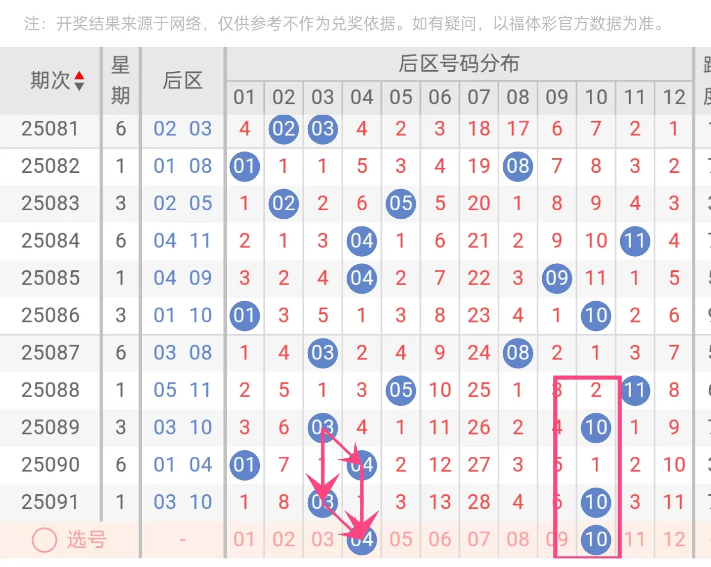 10号是后区热号网络的关键点,经常和04、09号一起活跃(占据了后区组合的29%)。