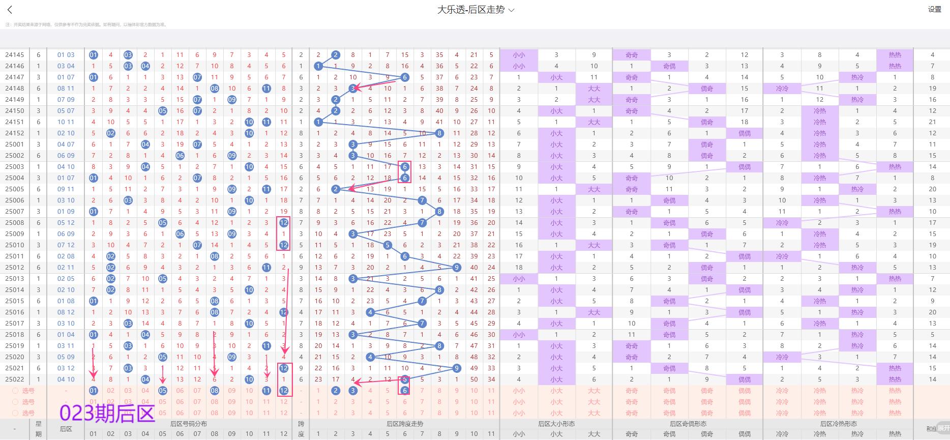 7. 大小比:前区“小大”形态占比60%(如2025022期为“小小小大大”),三区大号(≥25)需防连开。