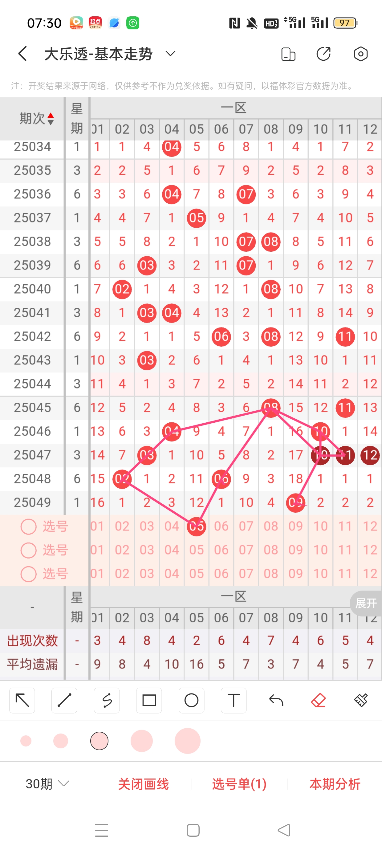 一区(1-12)近47期本区邻孤传16邻54孤3传,孤号热度高,本期着重邻传。近47期本区012路18:22:33,1/2路热度高,本期着0路。5已遗漏12期,与2之间呈现向右遗漏递减态势,需防。