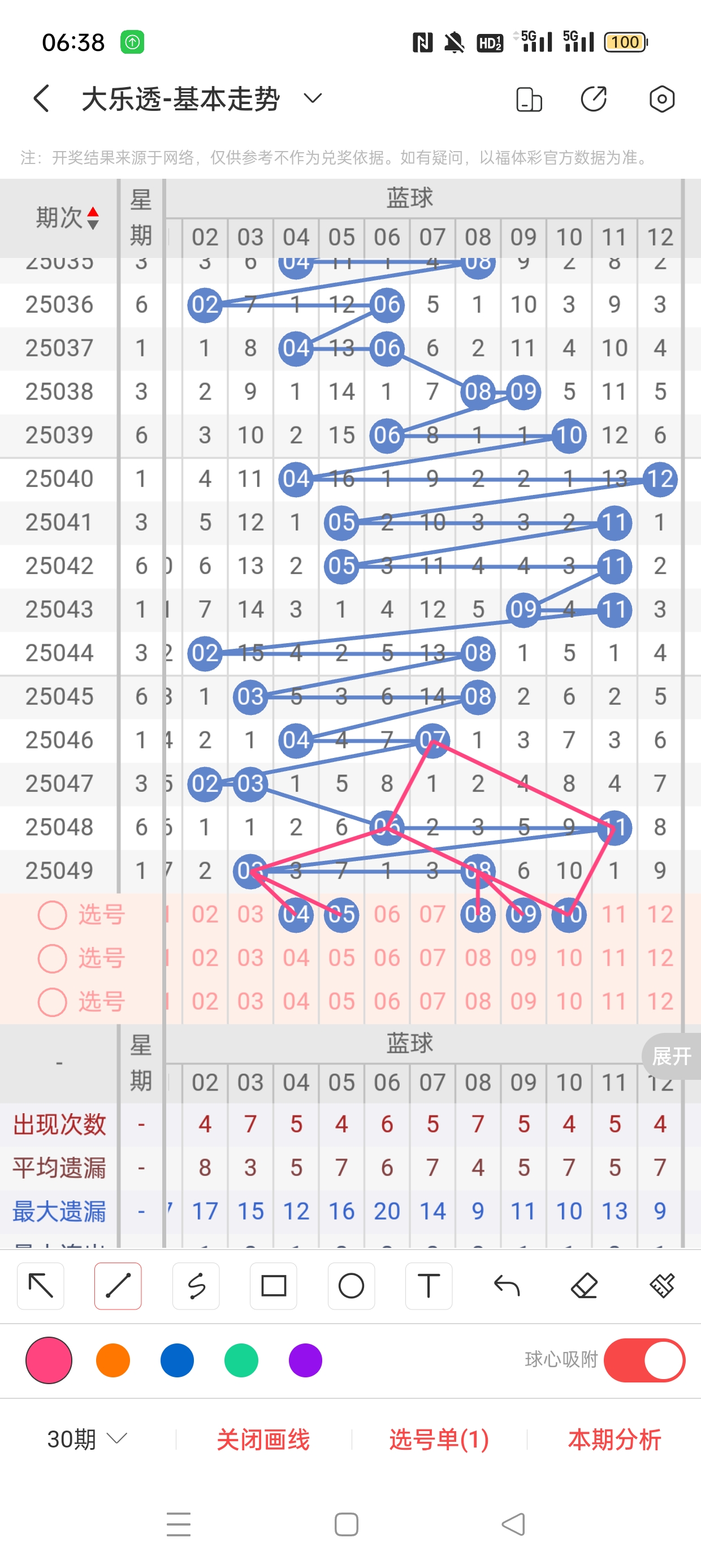 近5期第七位号码012路对比:2:1:0:2:2,2路热度低,本期着重0/1路。邻孤传对比:1邻4孤0传,孤号热度高,本期着重邻传。