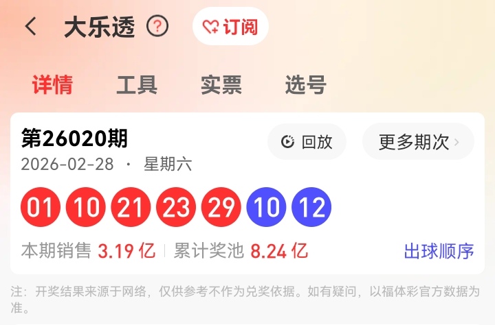 020期红球命中01、10、23 蓝球命中10
